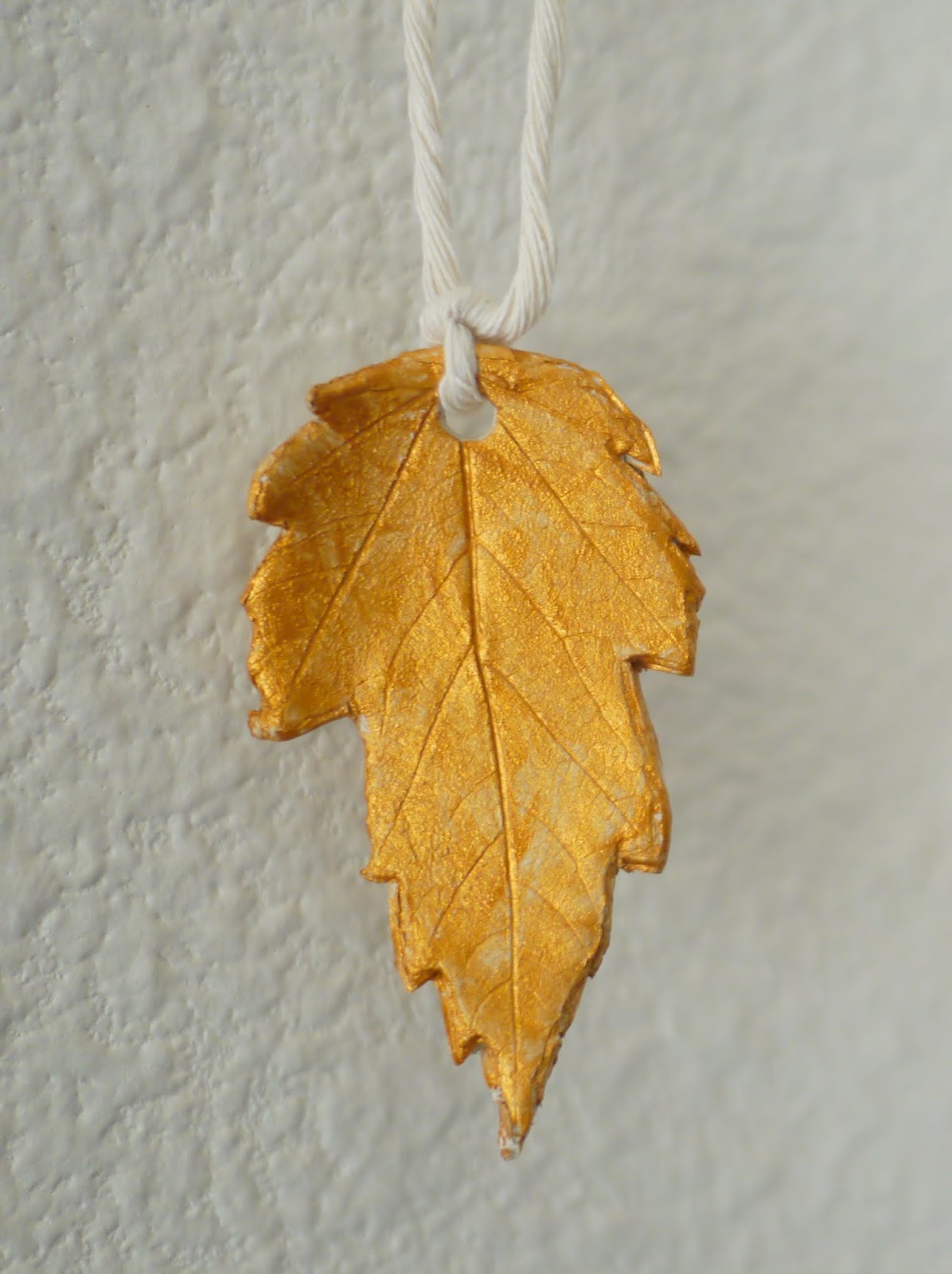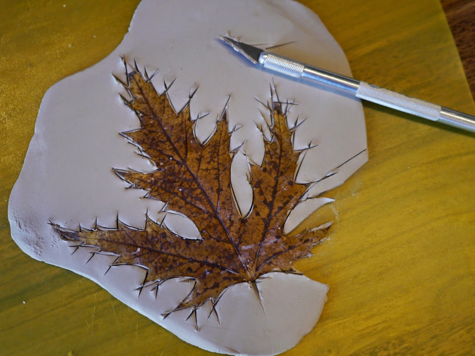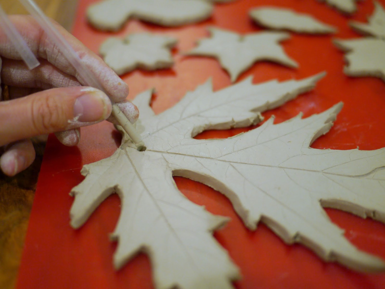 If you'd like to hang your clay leaf as an ornament punch a hole in the base with a straw.