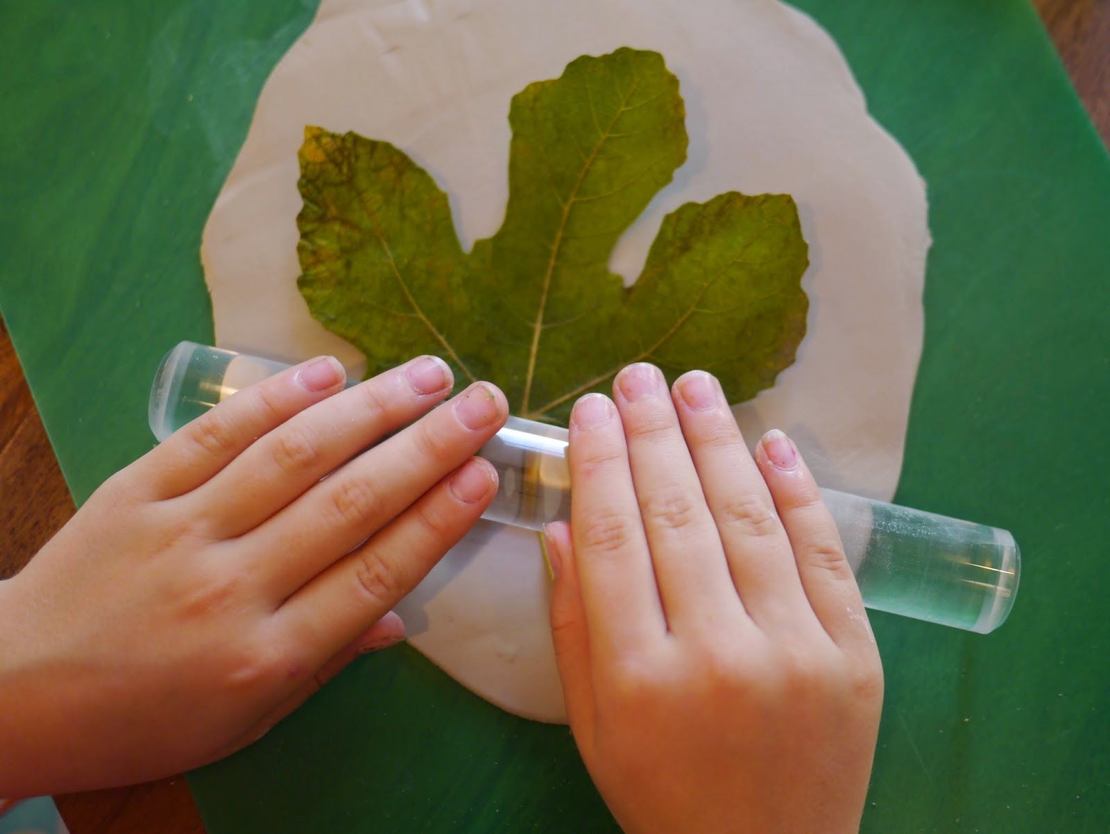 Gently roll over the leaf with a rolling pin. This will flatten the leaf onto the clay and make it stick securely.