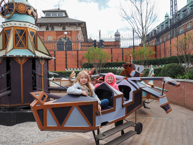 The many rides in Tivoli Gardens were not the only thing that kept the kids busy and having fun. Tivoli is home to some fabulous playground areas too. The kids climbed on a ship shaped play structure, ran between castle turrets, slid on twirling slides, made music with outdoor instruments, played in the sand pit, and ran around having fun. It was a nice little break to just play.